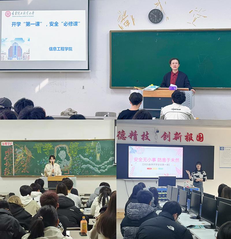 信息工程学院开学首节班会,气氛热烈,辅导员老师以开学第一课为契机与学生共话新学期愿景,增强班级凝聚力。同时信息工程学院的辅导员们化身为“安全引路人”,围绕交通安全、校园安全、校内安全、预防溺水、防震减灾、防电诈、法制教育、消防安全等多方面展开教育。