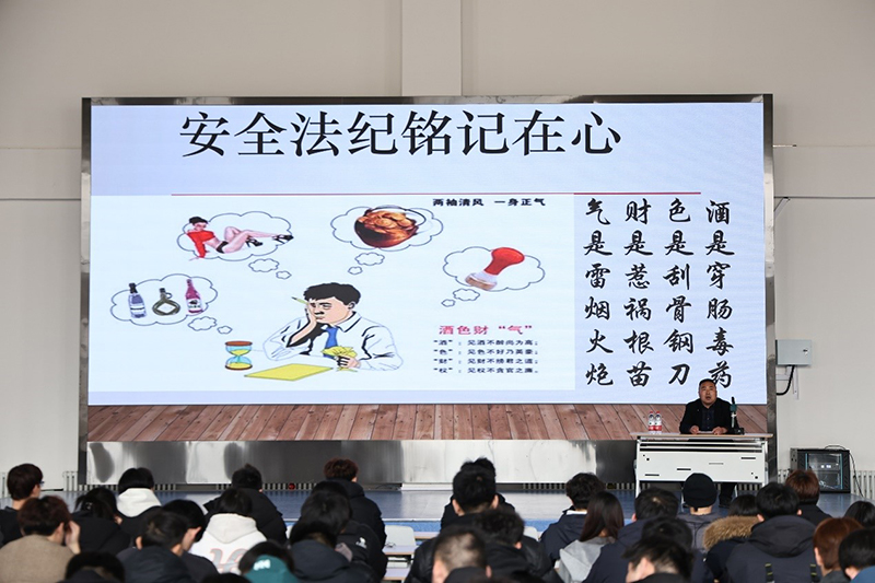 刘世军处长以“觉醒吧!打架人”案例为切入点,分别从打架斗殴、网络诈骗、网络舆情、寝室安全等多个方面开展教育,按照案例介绍、案例分析、危害影响和相关法律法规四个步骤,从情、理、法多角度高屋建瓴、深入浅出地为同学们进行讲解。同学们也对此次安全教育表达了自己的想法。机械制造及自动化技术专业学生孙志彬说:今天刘处长给我们上了一堂精彩的校园安全教育课,对于学校关于安全方面的问题有了更深刻的理解和认识。今后,我会牢记安全教育,杜绝安全隐患,与同学们共建安全校园。
