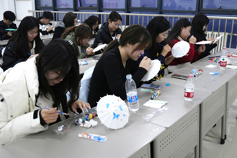 3月5日晚,beat365在线唯一官网1208室奏响着水墨丹青的韵律。融宣社团创新推出“美育+心理”融合教学模式,将美外于“伞”,内融于心,在“心灵之美非遗之韵”主题活动中,让同学们在美的色彩和作品的投射中,心灵得到美的浸润和艺术的熏陶。