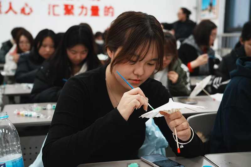 活动现场,指导教师温爽结合作品,从色彩心理学、艺术疗愈等角度,引导同学们解读自己的作品,了解内心世界,并教授大家如何运用艺术表达进行情绪调节,以更加积极乐观的心态迎接新学期的挑战。“在艺术疗愈理论的解析中,传统技艺与现代心理教育产生奇妙融汇共振。”温爽老师表示。