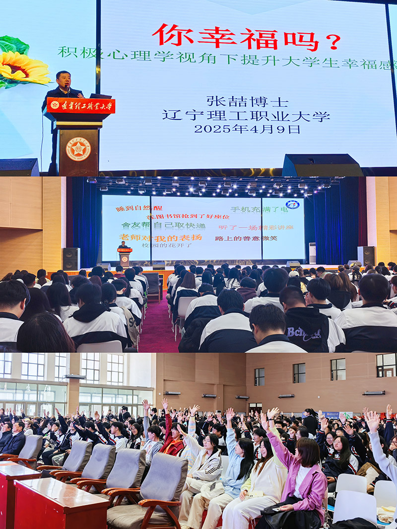 最后,由渤海大学社会心理服务与艺术治疗中心主任、心理健康教育领域的硕士生导师张喆教授做专题讲座,主题为《你幸福吗?——积极心理学视角下提升大学生幸福感之法》。张教授指出:幸福的定义是结合控制感与稳定感构建的,他结合自身经历分享与同学们展开互动问答,引导学生思考幸福本质。现场学生踊跃参与讨论,在沉浸式学习中解锁心理调适新方法,为提升自我幸福感汲取科学指引。