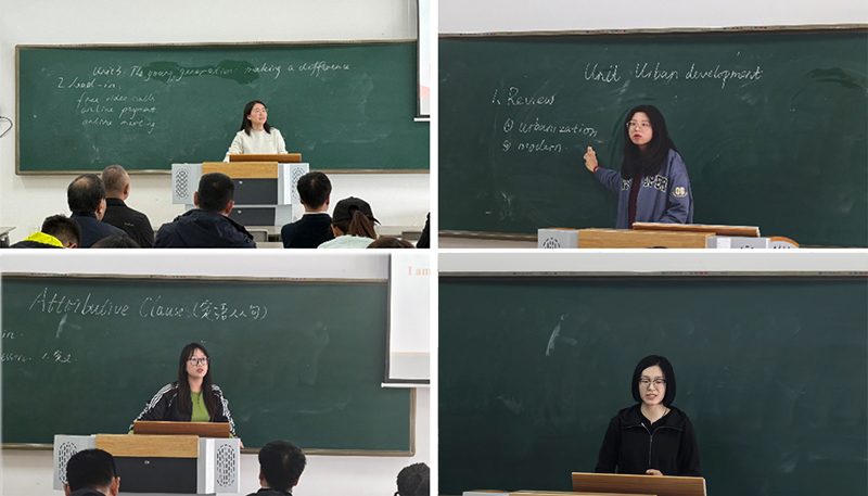 本次活动以“聚焦课堂实效,提升育人能力”为目标,四位青年教师付瑶《Business Success in the new Age》刘晴《Attributive Clause》王鹤《Urban development》和应思远《The younger generation》四位老师分别进行了10分钟的课堂展示。