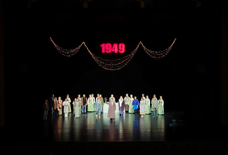 《北上》以震撼人心的叙事,回溯了新中国成立前夕那段意义非凡的历史。演员们用极具张力的表演,将中共中央与民主人士“肝胆相照、荣辱与共”的情谊娓娓道来,重现了护送三百多位民主人士北上东北解放区“民主建政、协商建国”的艰辛历程。跌宕起伏的剧情、震撼人心的场景,通过舞美、灯光与台词的精妙配合,化作一幕幕直击心灵的画面。师生们全神贯注,目光紧紧跟随舞台上的每个剧目,紧张处屏息凝神,动情处动心动容,当1949的标志升起时,全场响起了雷鸣般的掌声。