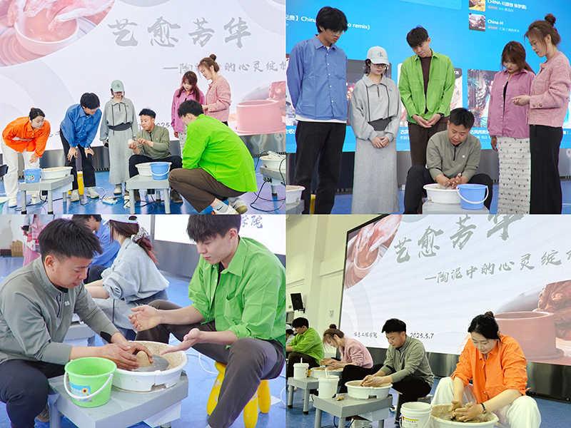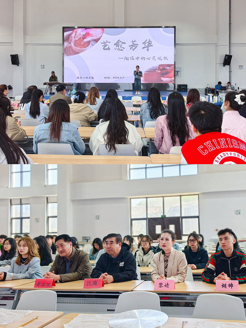 为弘扬中华优秀传统文化,推动非遗技艺在青年群体中的传承与发展,5月15日下午,信息工程学院特邀艺鼎非遗文创馆刘学智校长亲临现场,为师生们带来一场生动的非遗陶艺体验活动。党委宣传部部长黄立波、图书馆馆长沈庸、信息工程学院学生工作副院长黎婧等领导莅临活动现场,与师生们共同感受传统陶艺的独特魅力。