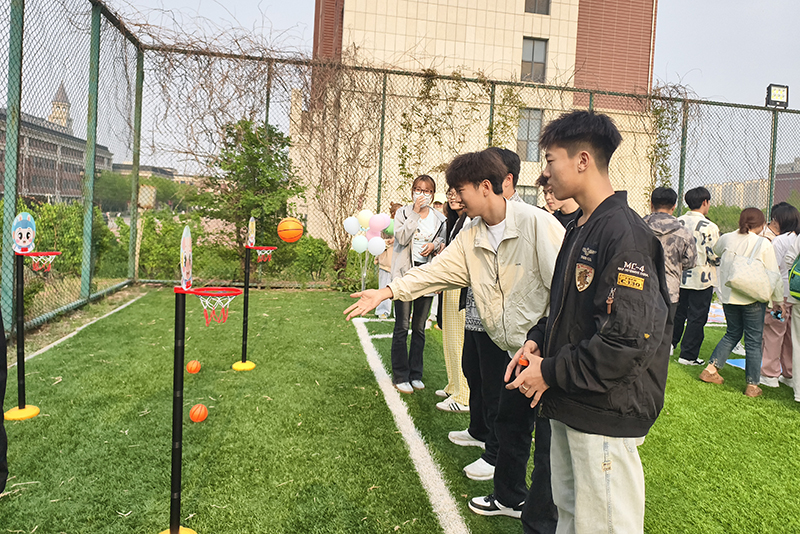 “投走烦恼”环节,同学们走上投掷线,每人一次机会,需将五个球投入三个篮球筐中。当球准确落入筐内,便可赢得一份精美小礼物,有的同学表示,在球投出的那一刻,感觉自己好像卸下来很多的压力,特别的轻松。
