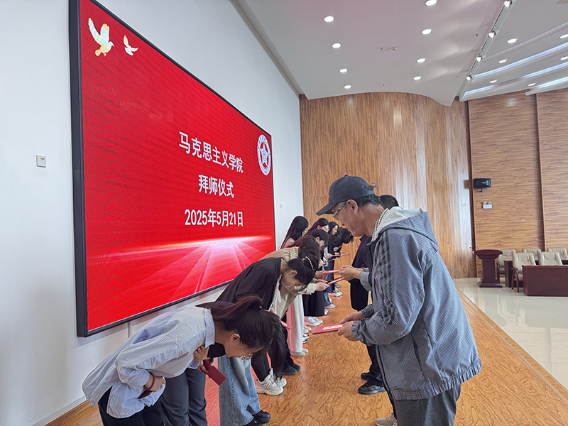 为传承育人薪火、弘扬师道精神,助力青年教师成长,5月21日,马克思主义学院在15楼报告厅举行“青蓝工程” 师徒结对拜师仪式。活动由院长孟黎主持,学院全体教师共同见证了教育传承的重要时刻。