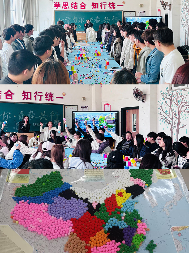当五彩毛球遇见中国地图,当指尖颜料碰撞情绪光谱,一场别开生面的心灵之旅在暮春时节温情启程。5月19日全国旅游日当天下午,健康文旅学院“心旅有你,青春共行”心理主题活动在综合楼217室举行。活动将心理教育与文旅特色深度融合,通过三大创意环节构建“行走的心灵课堂”,让学生在粘、绘、筑中解码情绪,于山水意象里厚植家国情怀。