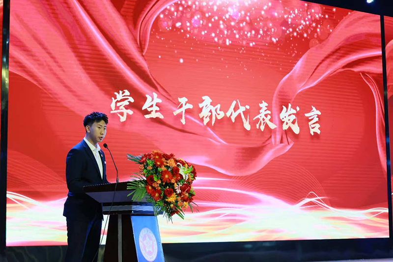随后,2022级优秀学生干部代表赵柏杨分享了自己在专业学习与学生工作中的成长感悟,呼吁同学们以勤为径,以梦为马,笔耕不辍,追求卓越。获奖学生代表奉献之星张佳绮结合自身经历,讲述了如何平衡学习与实践,并感谢学院提供的平台与老师们的培养。呼吁同学们投身于社会实践,体现自身价值,为学院贡献力量。
