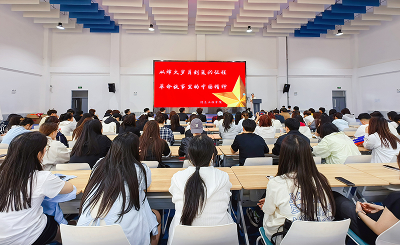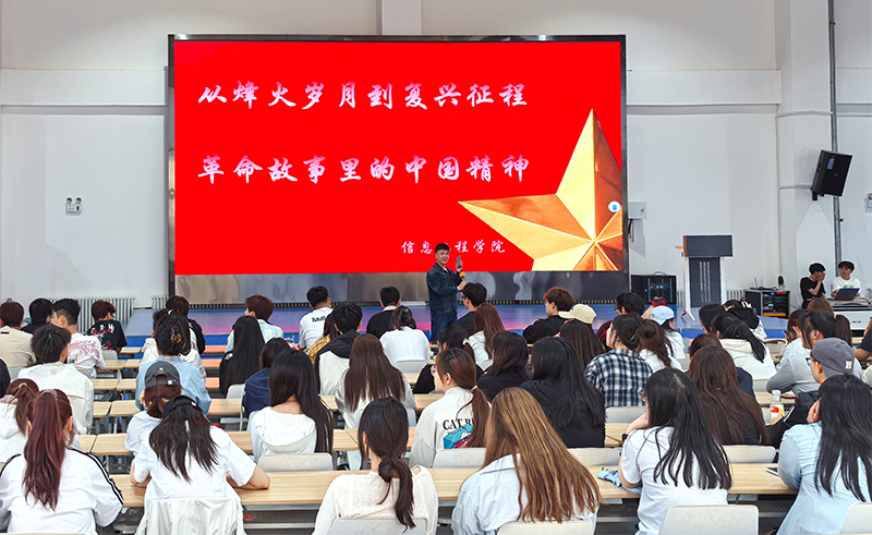 6月3日信息工程学院开展主题为“从烽火岁月到复兴征程:革命故事里的中国精神”宣讲活动。为师生们带来了一场深刻而生动的精神洗礼。此次活动邀请到沈阳军区政治部宣传部主任苏丛担任主讲,全院200余名师生代表参与了此次活动。