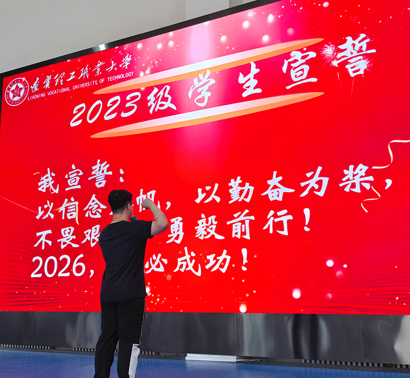 紧接着,2026届学生代表在领誓人的带领下庄严宣誓。铿锵有力的誓言回荡在会场,“以信念为帆,以勤奋为桨……”一句句誓言是他们对未来的承诺,展现出勇往直前、誓创辉煌的壮志豪情。