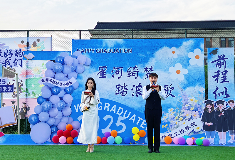 当夕阳为绿茵场镀上金边,信息工程学院2025届毕业生晚会在足球场上盛大启幕。没有传统舞台的束缚,星空作幕、草地为席,师生席地而坐,用歌声、欢笑与泪水,共同书写了一场“沉浸式”的毕业狂欢。