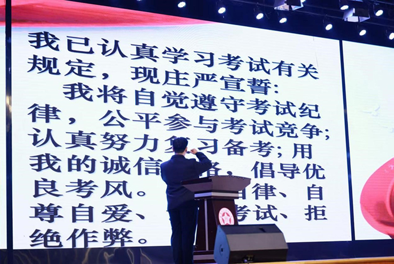 随后,张翔同学带领全体学生庄严宣誓:“严格遵守考试纪律,自觉维护考场秩序,以诚信之心对待考试……”铿锵的誓言彰显出我院学子坚守诚信的决心。最后,与会同学在诚信考试展板上签名,以笔尖承诺践行诚信考试准则至此诚信考试大会落下帷幕。