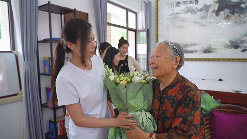 黎婧书记亲切地与革命前辈们交谈,询问他们的身体状况和生活情况,前辈们动情地说:“谢谢你们,还记得我们。”