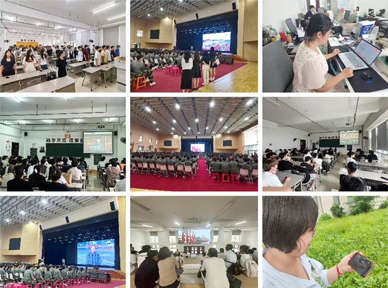 上午8时50分许,在教室、会议室、文体馆等场所,师生提前整齐就座,随着直播的开始,都紧盯大屏幕,用双眸记录了九三盛大阅兵的每个精彩瞬间。当承载着抗战先烈荣誉的战旗方队踏着铿锵步伐缓缓走来,当展示我国国防实力的装备梯队以威武姿态驶过,现场一次次响起热烈的掌声。不少师生拿出手机拍摄精彩瞬间,眼神里满是激动与自豪。