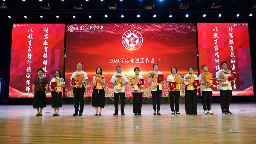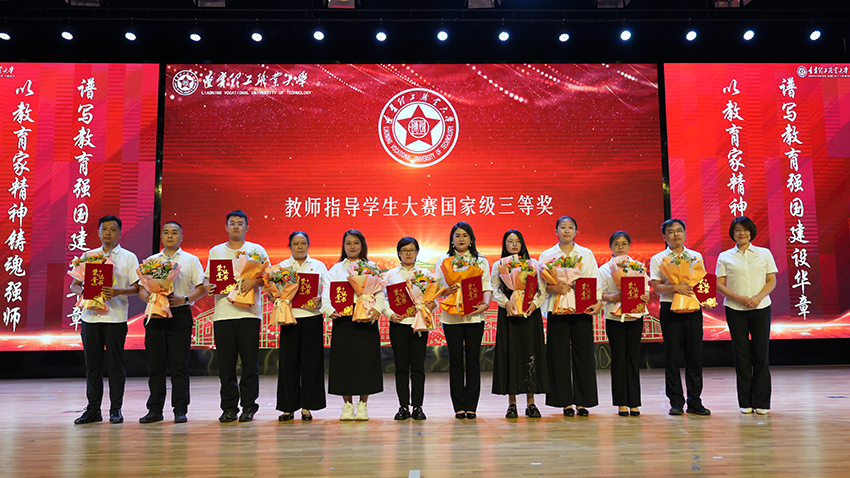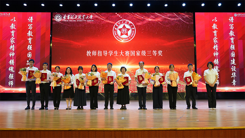 大会集中表彰了2024-2025学年在教育教学、科研创新、学生服务等方面涌现出的先进集体与个人。副校长谭英杰、人事处处长叶素红、教务处处长闫世杰、科技处处长刘连利、学生处处长朱磊分别宣读各类获奖名单,涵盖国家级获奖指导教师,校级“德恒奖”个人一等奖、师德标兵、心灵导师、先进工作者、优秀教师、优秀科研工作者、优秀辅导员等。校领导为获奖教师颁授荣誉证书,学生代表献花致敬,台上台下掌声如潮,榜样力量涌动全场。