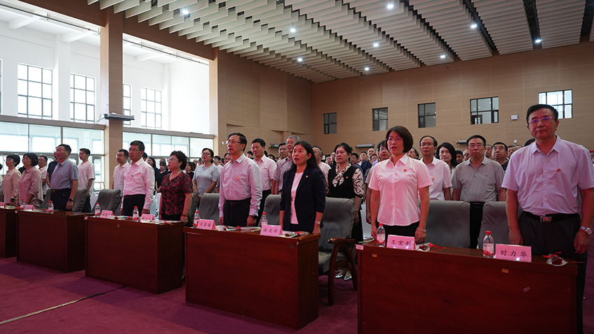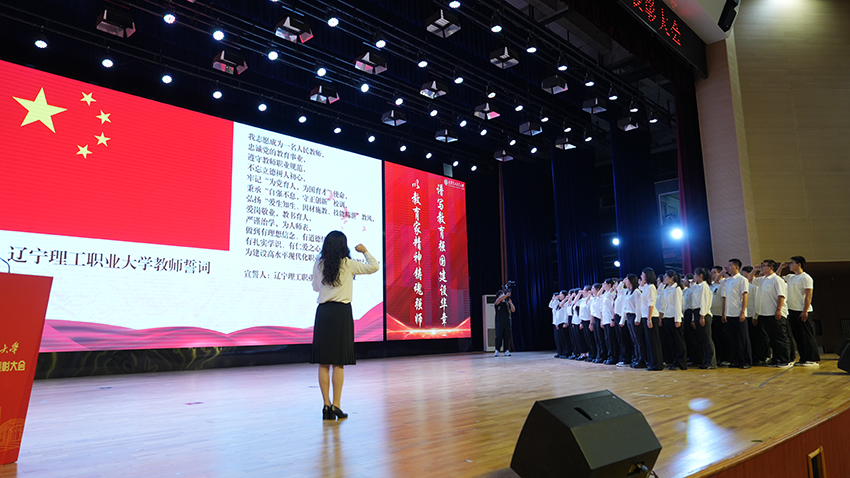 宣誓环节庄严隆重。今年新入职的教职工在人事处处长叶素红的带领下,与全场教师共同重温教师誓词,铿锵誓言回荡会场,共同表达“忠诚党的教育事业,履行教书育人职责”的坚定决心。