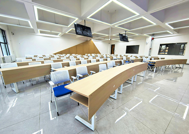 2.轻量化智慧设施:采用可升降智能讲桌、智能中控、智能班牌以及可灵活组接的人体工学课桌椅,借助智能系统,实现单人学习、小组研讨、互动展示等场景的一键切换,灵活适配不同教学模式。