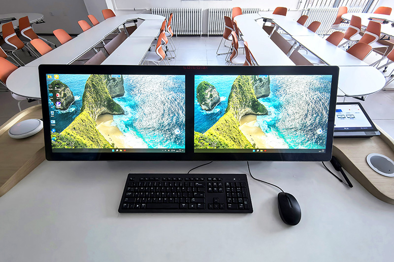 1.多屏联动系统:前端主显示屏+双侧悬挂副屏形成“三位一体”展示矩阵,课件、板书、音视频可跨屏同步,后排同学也能清晰捕捉每一处教学细节。