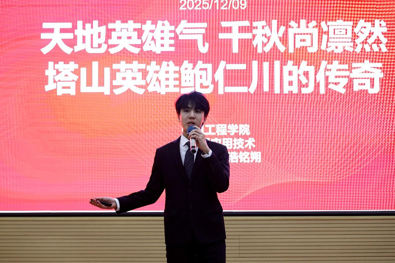 比赛现场,15位来自不同学院的同学依次登台,围绕中国共产党人的精神谱系,讲述了一个个感人至深的红色故事。从《特级爆破英雄李广正》《烈火忠魂:梁士英舍身炸碉堡》中革命先烈的壮烈英勇,到《独臂擎旗,热血映山河》《断肠明志、热血铸魂——烈士陈树湘的一生》里共产党人的铮铮铁骨与执着坚守;从《弹片映初心:老兵黄宗德的赤诚人生》《现代花木兰郭俊卿》展现的崇高品格,到《触摸炮垒记忆 涵养家国情怀》《踏红色热土悟初心 以研学之思启新程》中新时代青年的传承自觉。选手们用饱含深情的语言,生动诠释了中国共产党人精神谱系的丰富内涵与时代价值,现场气氛庄重而热烈。