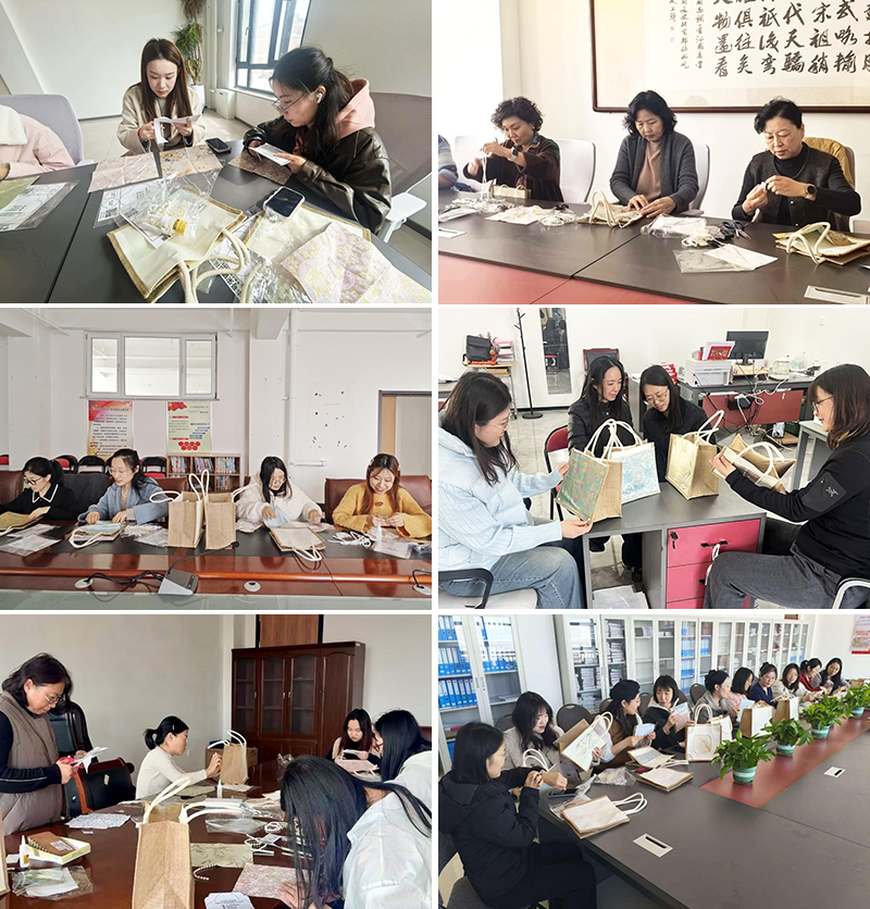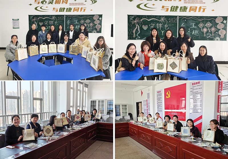 本次系列活动贴合学期初工作实际,兼顾趣味性与实用性,覆盖全校各分工会女教职工。其中,宋锦包DIY手工制作活动作为核心特色项目,沉浸式传承非遗宋锦文化,各分工会于3月23日至27日自主开展,女教职工们亲手缝制精美宋锦包,在指尖技艺中放松身心、陶冶情操,成品均由个人留存纪念。