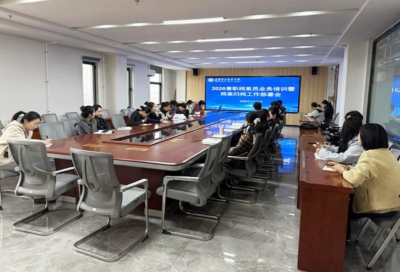 为进一步规范学校档案管理工作,提升兼职档案员业务水平与归档质量,4月14日下午,学校在北校区行政楼902会议室召开2026年度兼职档案员业务培训会暨2025年度档案归档工作部署会。会议由校办副主任刘爽主持,各职能处室兼职档案员参加会议。
