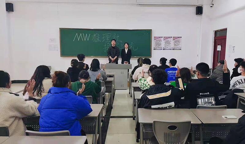 MW推理社团以研究推理文学、推理谜题,引起大学生对推理领域的兴趣,发展中国推理为宗旨,以推广、普及知识、丰富校园推理文化,服务社员兴趣爱好为根本任务。希望通过本次换届选举,新一任领导班子踔厉奋发、奋楫当先,扎实开展读书交流、推理讲坛、模拟事件、谜题大赛等活动,让社员感受侦探推理的乐趣,提升自身推理能力,促进自身全面发展。