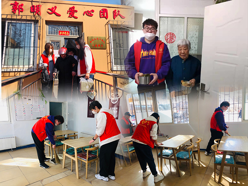 曾在2021年的暑假,学院的志愿者就来到鞍山鞍钢集团齐大山铁矿拜访“当代雷锋”郭明义。今年的寒假,他们来到了郭明义爱心公益餐厅做义工,继续跟随郭明义的脚步,用实际行动践行着新时代雷锋精神。同学们为餐厅送去米、面等物资,并亲手为前来用餐的老人们打饭,与老人们聊天为老人们送上温暖的问候。公益餐厅负责人向志愿者们介绍:“该餐厅是郭明义爱心团队成立的首家公益餐厅,面向70岁以上的孤寡老人、残疾人、低保户以及困难家庭的老人开放,为老人提供免费午餐。”并对志愿者们的到来表示感谢,表示看到了当代大学生积极乐观、阳光开朗、乐于奉献,勇于担当的良好品德。