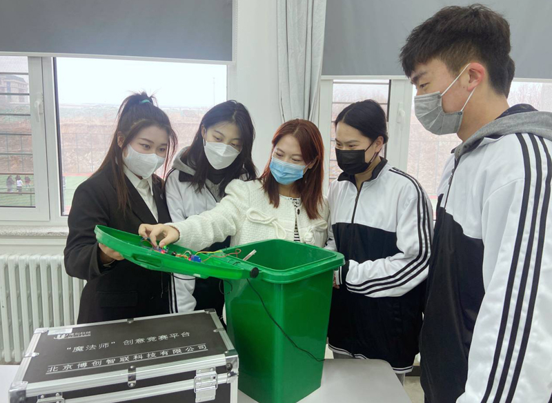 该产品具有智能探测深度、智能定位、智能灭火消毒、智能回收等特点,且使用上具有简单便捷,操作精准,设计精密,卫生环保,安全易推广的特点,连接手机APP就可以操纵。该产品为学院垃圾回收工作提供便捷,减轻后勤人员的负担,提高垃圾回收效率,精准消毒医疗垃圾。为公共环境卫生整治、绿色生态环境建设和疫情防控均提供支持。目前,该垃圾桶已经在软件楼推广使用。