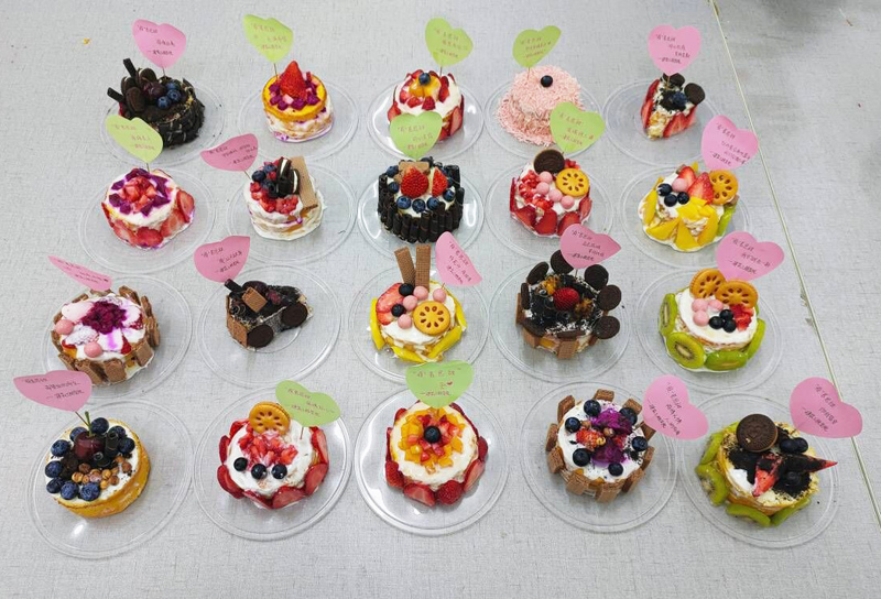 在活动过程中,辅导员与同学们一起精心地制作每一份小蛋糕,细心地进行点缀。最后,亲笔在爱心便利贴上写下他们的祝福语。学生们纷纷表示:“封校不封爱,辅导员老师与我们共同战斗,我们共同期待春暖花开之后,疫情散去”。