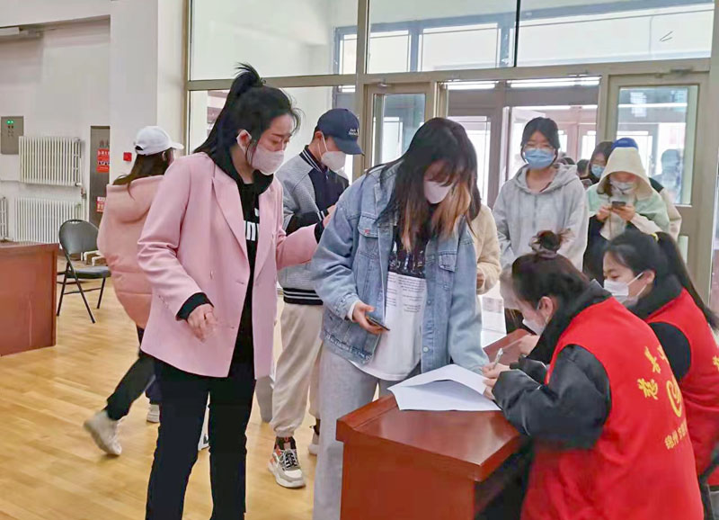14:00分,到文体馆带领学生们做核酸。核酸结束后,又惦记着超市值班的孩子们,直接奔超市门口走去,看到孩子们依然笔直的站在超市门口检查工作,心里暖暖的,和同学们一起坚守在岗位上。