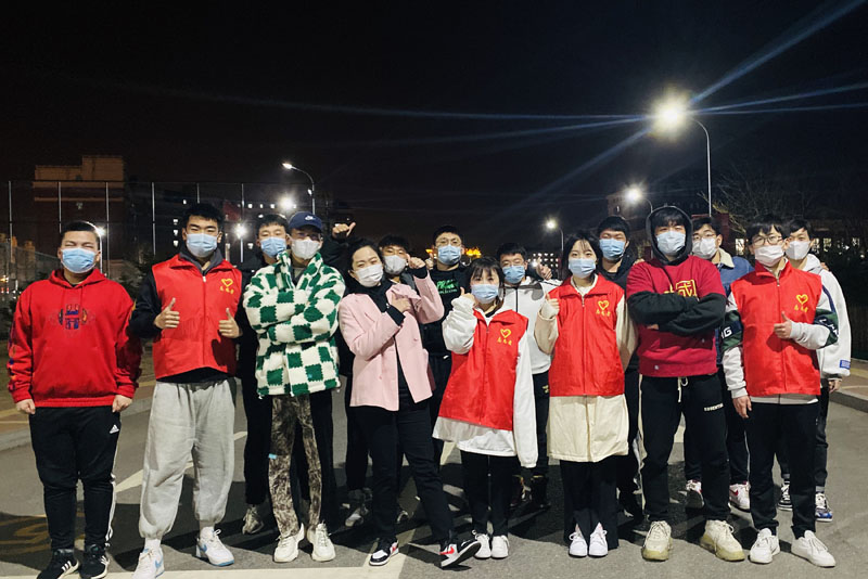 20:00分,志愿者们脱下红马甲,志愿服务工作圆满结束,一起照了一张集体的合影。她又走向了学院的广场舞团。随后,又来到 篮球场上看看学生们喜欢打夜场的篮球。