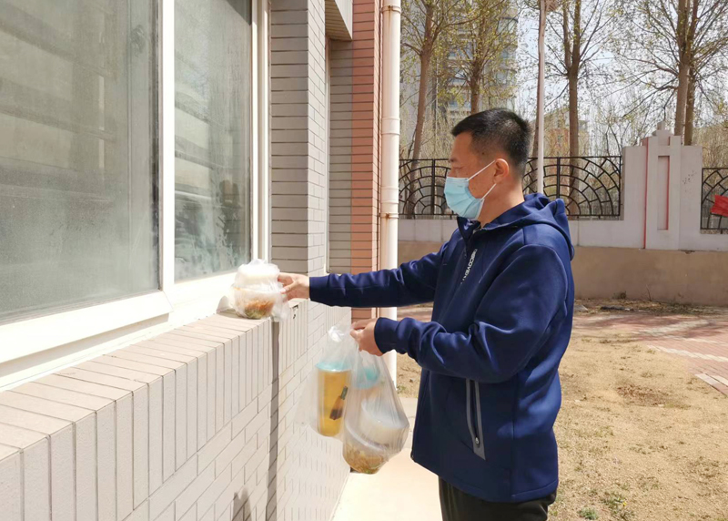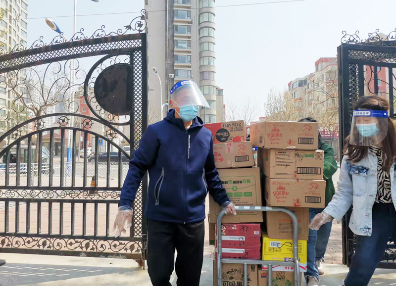 由于此次封校时间较长,学校南校区超市的部分工作人员因家庭存在困难而提出辞职,部分货品的搬运工作就交给了像孙国莹老师这样的男同志。每周周三上午10点,孙老师都会准时地戴着防护面罩和手套到南校区东门帮助超市搬运货物,有时一搬就是两个小时。