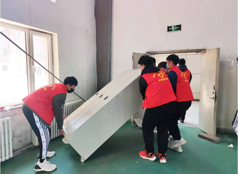 活动中,同学们有的拿着扫把,有的拿着拖布,把羽毛球馆和连廊进行了彻底清扫,同时把连廊内的整理箱搬回到羽毛球馆里,方便老师和同学存储物品。
