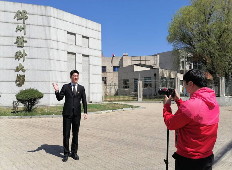 幸运的是在活动结束前夕,葫芦岛疫情解封了,李家宁同学来到锦州辽沈战役纪念馆和亮甲山战斗遗址锦州医科大学校园内,在指导教师马丽、果辉两名老师的帮助下进行了外景录制。