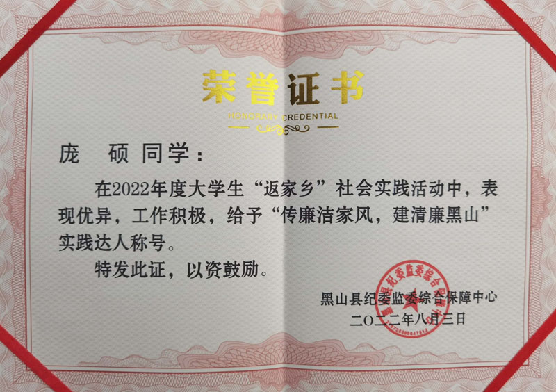 庞硕获“实践达人”称号
