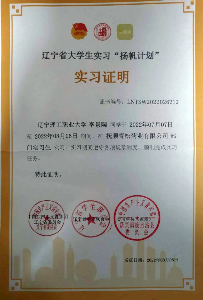 李景陶参加辽宁省大学生实习“扬帆计划”