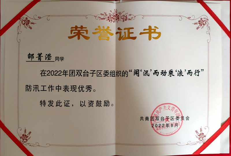 他们积极参与暑期防汛志愿服务,在防汛期间他们不怕苦、不怕累、敢于担当、甘于奉献,面对严峻的形势用自己的实际行动为人民群众构筑起了坚固的屏障。