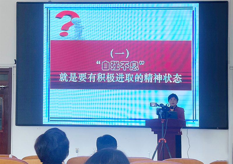 此次培训恰逢党的二十大胜利召开期间,党委副书记、副校长蔡红武首先向全体同志提出了政治要求,必须坚定不移跟党走,全面学习二十大报告,深刻领悟精神实质,坚决贯彻和落实党的各项决议。接着,她围绕校园文化内涵及师德师风建设,给大家上了生动的一课。