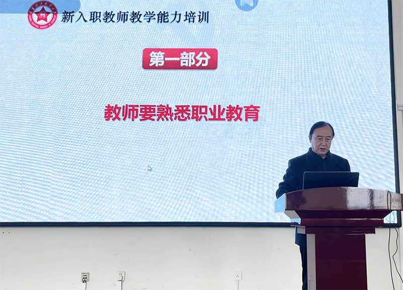 副校长、教师发展中心主任孟庆男从熟悉职业教育、把握教学规范、形成教学技能三个方面,对职业本科教育教学进行了深度剖析。通过孟校长精彩且细致的讲解,使新教职工认识到了教学能力对一名优秀教师的重要意义,使大家收获颇丰。