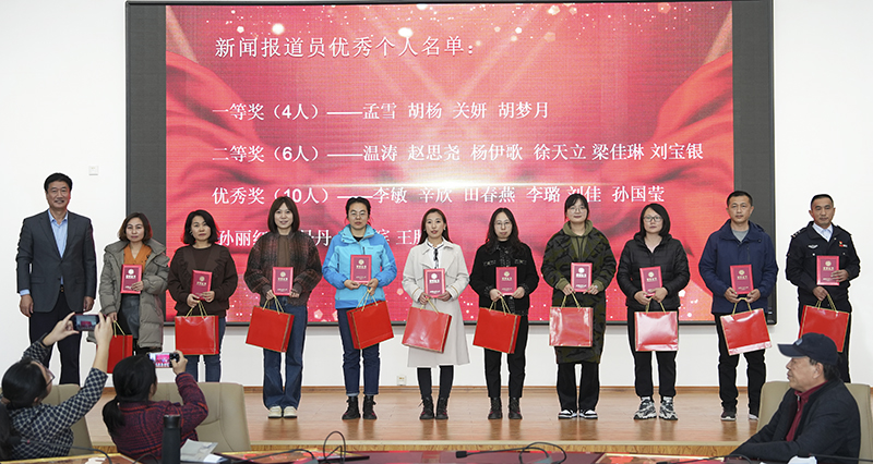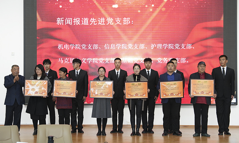 党委副书记副校长蔡红武宣读学校党委表彰决定。学校对6个新闻报道先进党支部、20个新闻报道先进个人、20个学习强国先进个人进行了隆重的表彰。