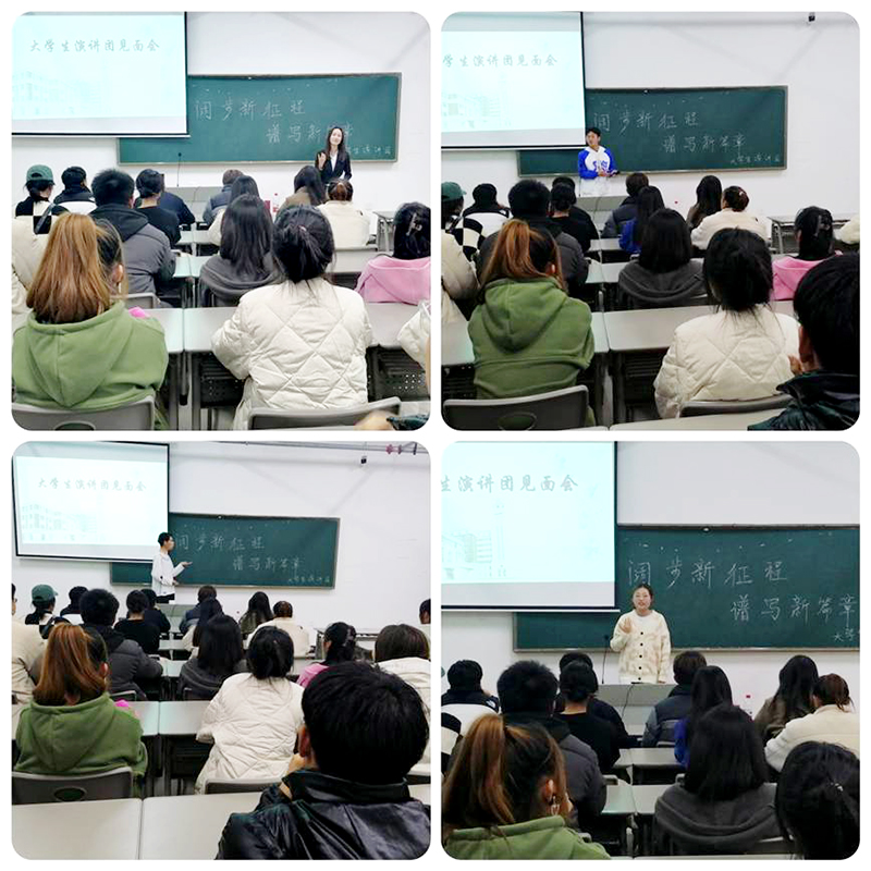 近日大学生演讲团在教学楼606室以“阔步新征程 谱写新篇章”为主题召开了新团员见面会,会议由大学生演讲团团长代美璐主持。