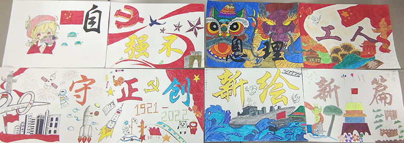 同学们用画笔和斑斓的色彩,淋漓尽致地展现自己的画工;用各自独特的视角,描绘着心中最美好的画卷;用天马行空的构思与创意,让缤纷的色彩搭乘创意的翅膀在画布上自由飞翔。线条的勾勒,色彩的填充构成了一幅幅富有自由、清新、随兴的艺术画,有含苞待放的花朵、有随风飘扬的红旗,有腾空而起的火箭,有栩栩如生的龙狮,有无比可爱的卡通人物,还有即兴创作的各种艺术字,云舒霞卷,创意十足。