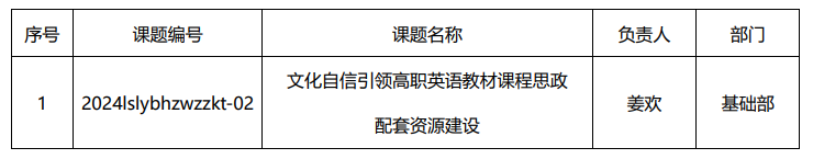 近日,经个人申报,学校推荐,辽宁省社会科学界联合会评审,beat365姜欢老师主持的《文化自信引领高职英语教材课程思政配套资源建设》项目,获批2024年度辽宁省经济社会发展研究合作课题立项。