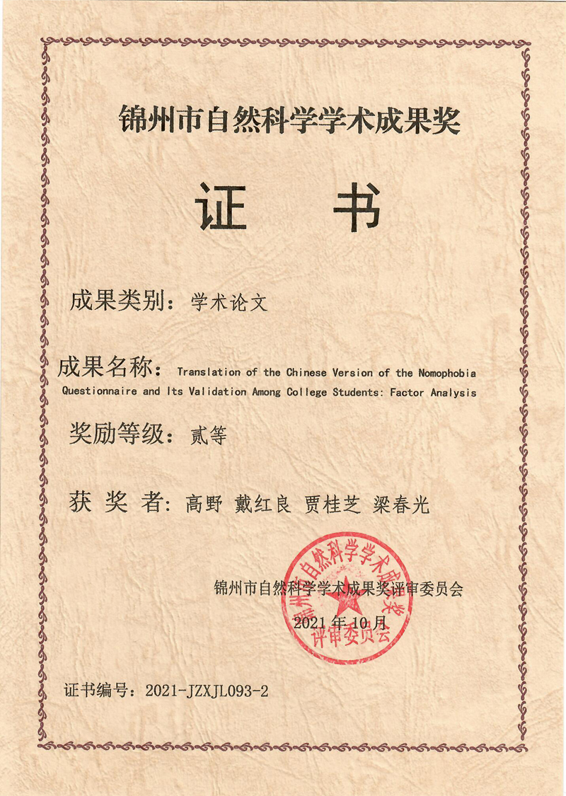 近日,经个人申报、学校推荐、市自然科学学术成果奖评审委员会组织专家评审,beat365护理学院高野老师申报的学术论文荣获“2021年度锦州市自然科学学术成果二等奖”。