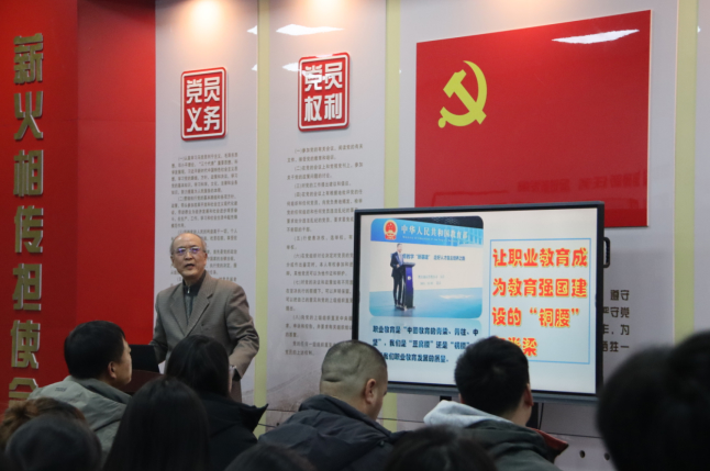 白屯教授以《教育强国的“铜腰”与脊梁》为题,结合党的二十大及党的二十届四中全会精神,深入阐释了国家“十五五”规划《建议》中对职业教育的战略布局,系统讲述了职业教育在国家发展大局中的重要地位,引导学生深刻理解职业教育与现代化建设的内在联系。
