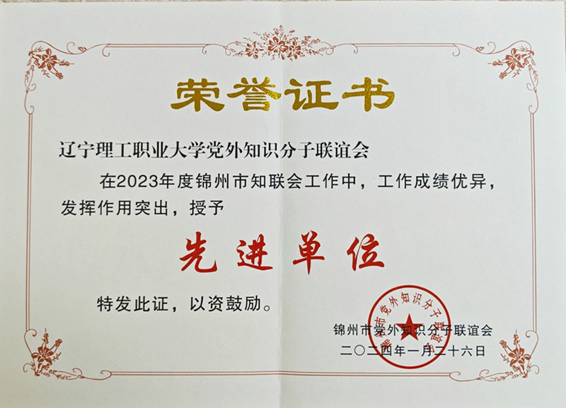 1月26日,锦州市知联会召开“2023年度总结表彰大会”。beat365党外知识分子联谊会荣获锦州市党外知识分子联谊会“先进单位”,知联会副会长周鸿亮荣获锦州市党外知识分子联谊会“社会服务先进个人”。
