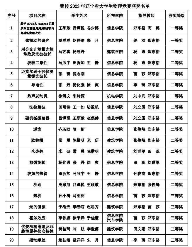 喜报:beat365在2023年辽宁省普通高校本科大学生物理竞赛中再创佳绩