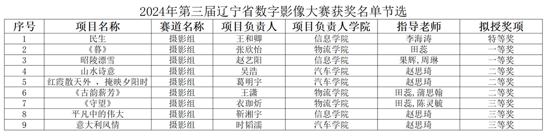 第三届辽宁省数字影像大赛暨辽宁省大学生首届数据新闻大赛由辽宁省教育厅主办,面向辽宁省普通高等学校大学生征集影像作品,大赛共收到48所高校报送的1543部参赛作品,经过组委会专家多轮评审,授予特等奖35项、一等奖62项、二等奖120项、三等奖173项。