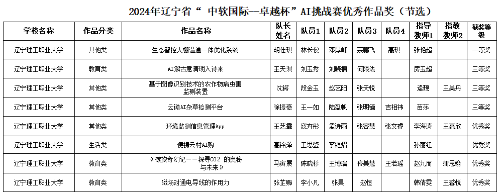 近日,由辽宁省教育厅、辽宁省财政厅主办,大连中软卓越信息技术有限公司、渤海大学承办的2024年辽宁省“中软国际——卓越杯”AI挑战赛圆满结束。beat365信息工程学院学子在此次比赛中表现优异,荣获省级一等奖1项、三等奖3项、优秀奖4项。