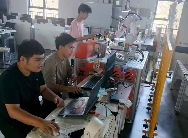 今年6月,刘成旺、佟念泽、伍成智三位同学首次代表学校征战全国三维数字化创新设计大赛省级赛事,凭借扎实的专业基础与出色的实操能力一举夺得省赛特等奖,成功获得国赛的“入场券”。三维数字化创新设计大赛涉及的知识点繁杂且前沿,涵盖机器人编程、数字孪生、虚拟调试、PLC通讯、SolidWorks三维软件画图、增材制造等多个领域,作为入学不足一年的24级学生,知识难度大、竞争对手强劲,三位同学直面挑战,不惧不懈,整个暑期没放一天假,日夜奋战在实训室。青年教师安佳宝与温清尧更是全程跟进,悉心指导,热情服务,闪闪发光的奖牌是对三位同学半年多汗水的最好回报,也是对学校教学成果的充分肯定。